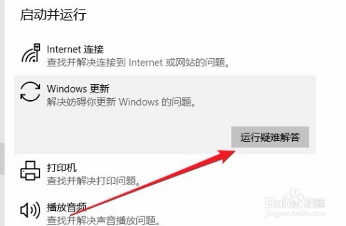 点击Windows更新快捷链接后,在弹出的下拉菜单中点击“运行疑难解答”按钮。