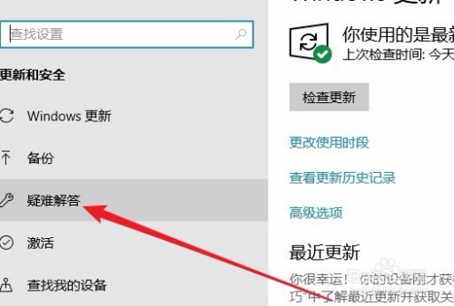 接下来我们点击左侧边栏的“疑难解答”菜单项。