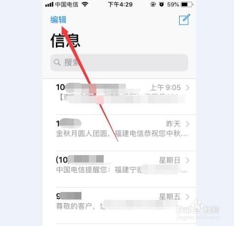 那么怎么批量删除呢,其实很简单,我们点击短信页面左上角的编纂功能。