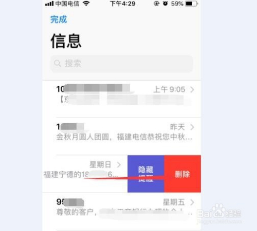 然后看那条短信是需要删除的,直接标的目的左滑动短信就可以了,这时辰就会呈现删除的选项,点击删除就把这条短信删除了。
