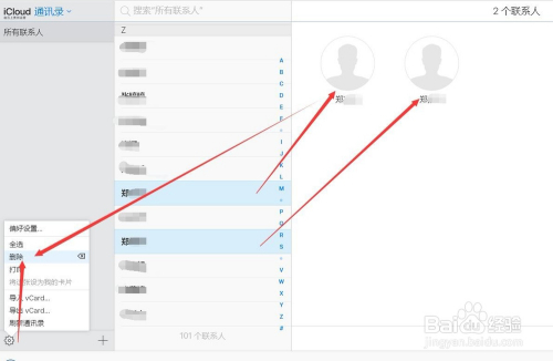 然后我们按住键盘CTRL建批量选择需要删除的联系人后,点击左下角的设置功能中的删除就可以了,如许就可以批量删除iphone上的联系人了。