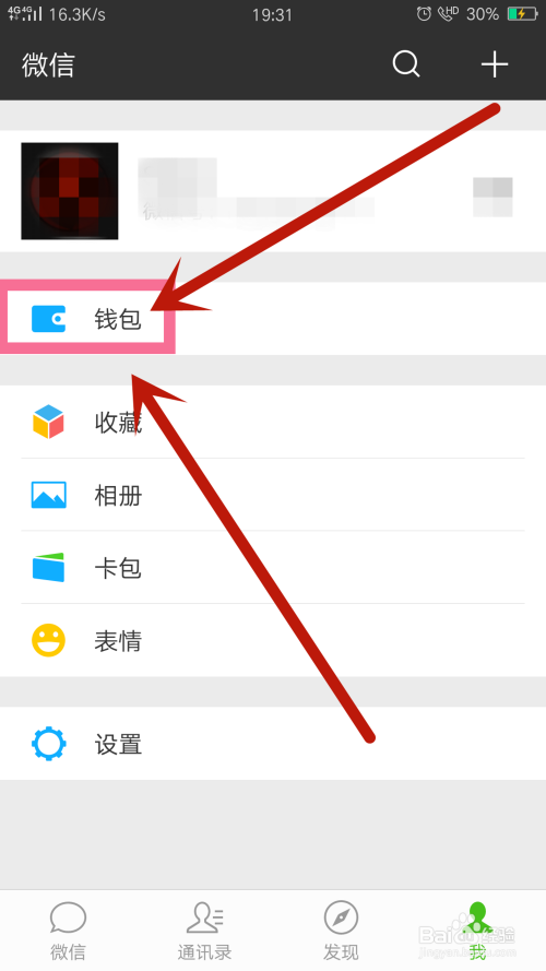 在我的微信中,点击进入微信钱包,如图所示