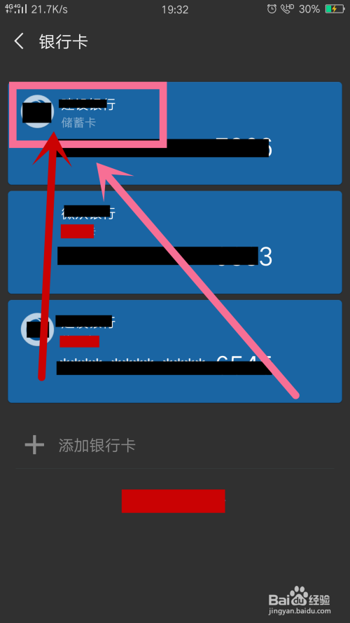 在银行卡列表中,点击所要删除的银行卡,如图所示