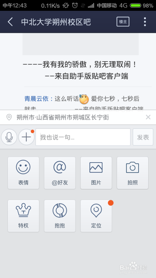 百度贴吧更新版本今后,推出了定位功能,那么定位功能具体该怎么用呢?接待大师速来围不雅我的经验啦。