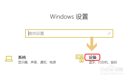 接着我们需要在电脑端寻找这个蓝牙设备了,首先点击开始菜单,然后在左侧列表中找到“设置”,点击之后在Windows设置页面里点击“设备”这一项;