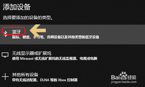 打开开关之后,点击该页面最上方的“添加蓝牙或其他设备”,在添加设备界面选择“蓝牙”,如图二;