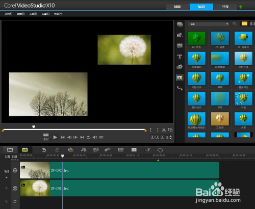 给两张相邻的图片添加默认的EDIUS 转场,让结果更都雅。
