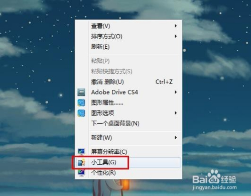 添加Win7系统桌面日历很简单,我们鼠标移动到电脑桌面右键选择小东西打开。