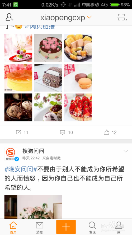 登录微博账号今后,展示在我们面前的就是微博本家儿界面啦,点击“我”页面。