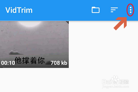 安装到手机该APP之后,打开它会主动显示今朝手机里的所有视频文件,如图一...然后页面的右上角是一个省略号图标;