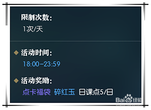玩家游戏脚色品级达到25级以上,使命领取时候:天天在18:00时至23:59时之间。