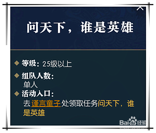 问全国谁是英雄使命,天天可使命一次,使命完当作后,可获得点卡福袋、碎红玉、5点日课点等活动奖励。