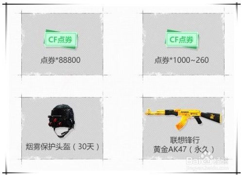 用星星进行抽奖。除了兑换奖励外,还可以耗损星星来进行抽奖。奖品很是丰硕,有CF点券、QQ超等会员、CF会员、姑且性装备、永远性兵器等,并且还有概率获得全能钥匙。兑换到的奖品直接放入仓库。