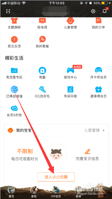 标的目的下拖动页面,点击页面最下方的“进入小小优酷”。