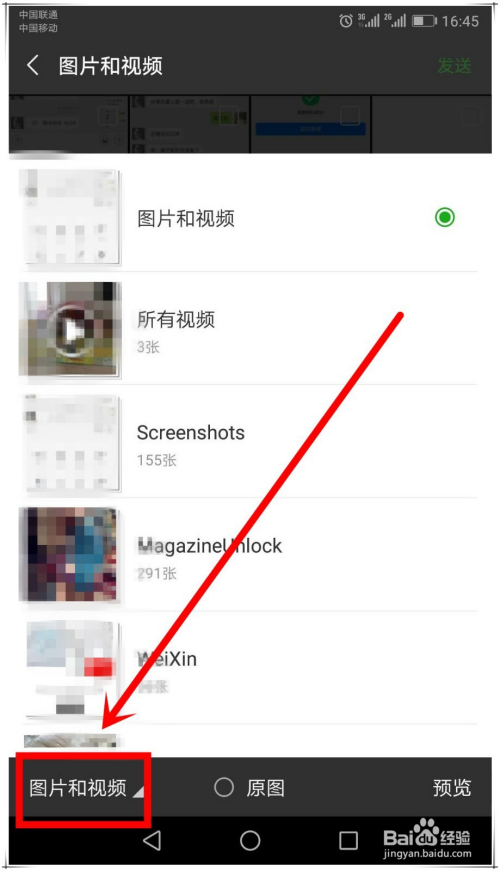 然后在相册列表中,选择“所有视频”,打开视频相册,从中选摘要发送的视频,点击“发送”即可!