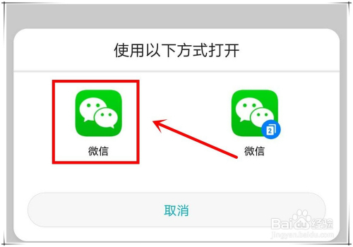 在弹出的打开体例窗口中,选择准确的微信法式。