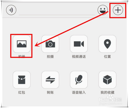 点击右下角的“+”按钮,在弹出的按钮中,找到并点击“相册”。
