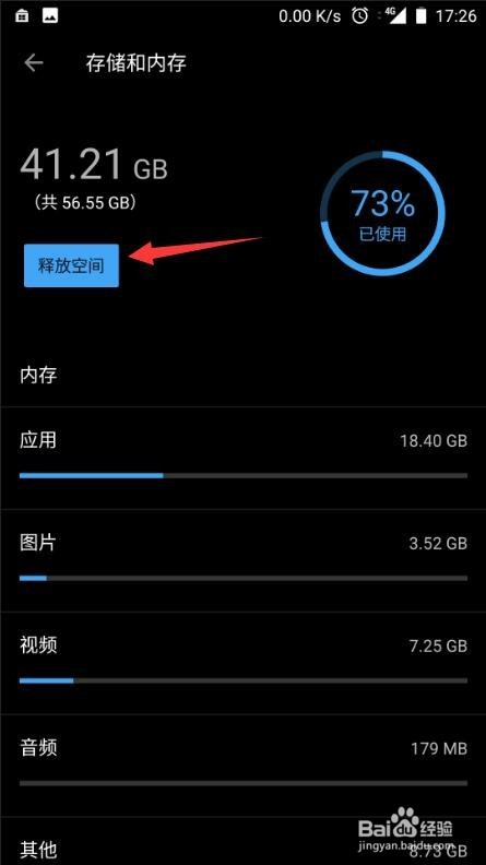 点击进入后可以看到释放空间按钮,这里点击释放空间