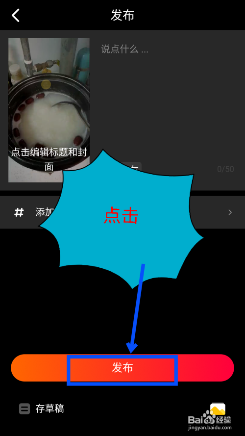 在打开的发布界面,设置封面和编纂题目,添加话题,点击最下面的发布。如图所示