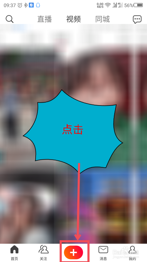 在打开的软件首页界面,点击底部中心的加号选项。如图所示