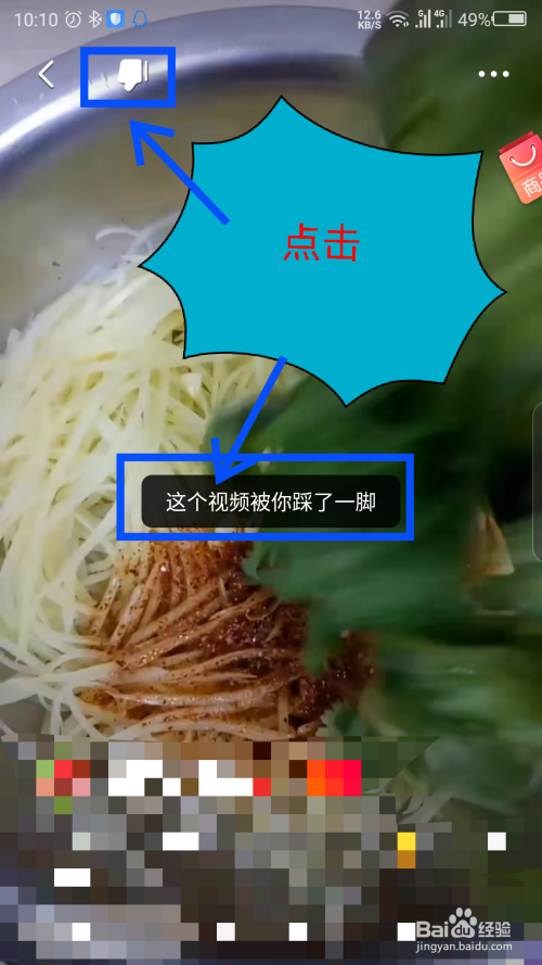 点击一下左上角的反赞手势,会显示视频被你踩了一脚,同时手势也改变了。如图所示