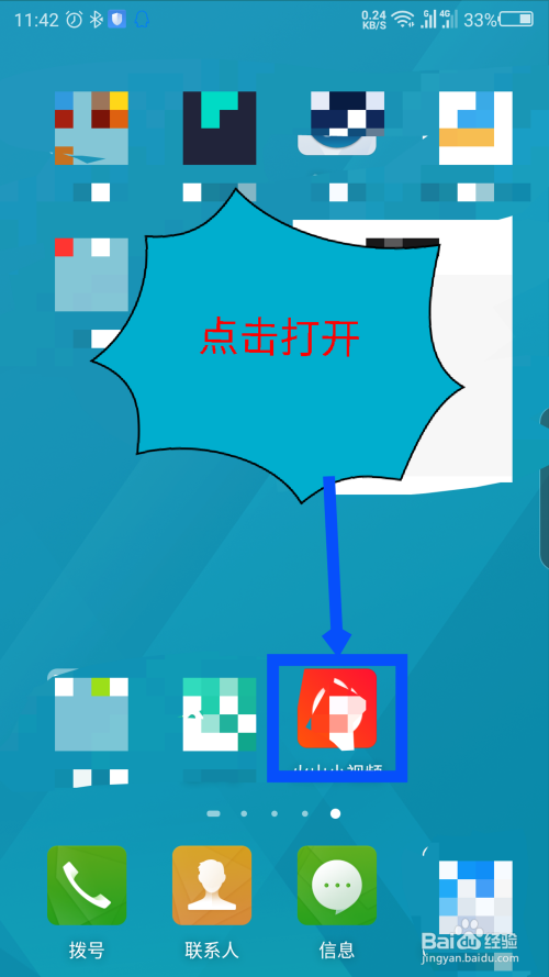 打开仗山小视频后,在首页界面点击播放一个视频。如图所示