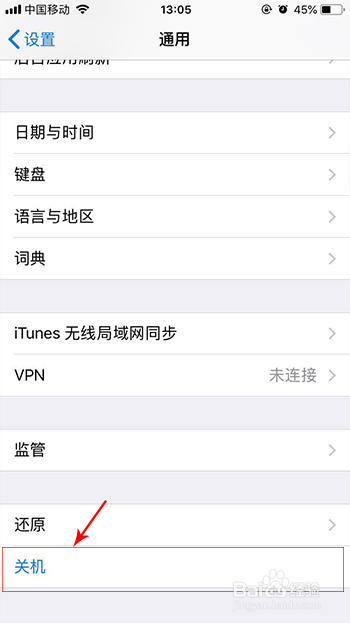 操作是点设置--通用--关机,在通用中,一向翻到最后一行,就会看到关机设置了,点关机后,也会跳转到滑动关机界面。