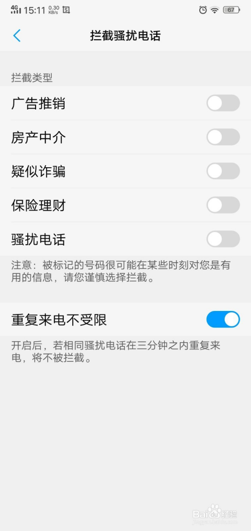 这时会呈现良多阻挡德律风的类型,有告白推销、房产中介、疑似诈骗、保险理财、骚扰德律风,我们要按照本身的需求进行类型选择。