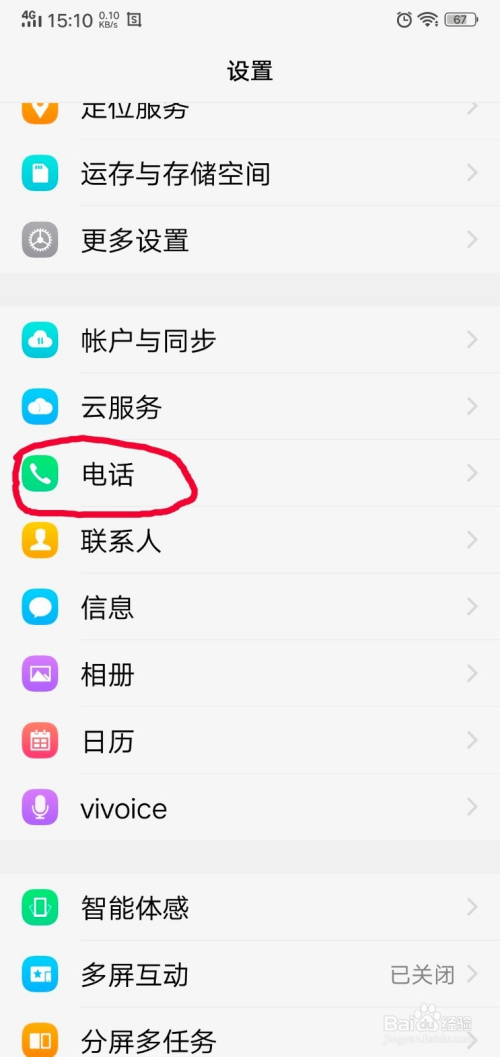 在设置功能菜单中,我们找到“德律风”设置功能,点击进去设置。