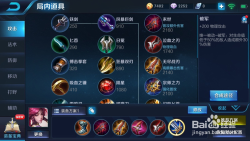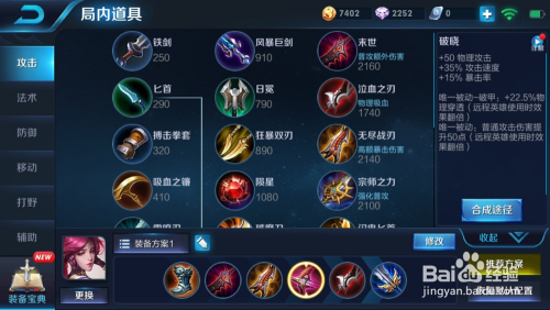 第四件装备就是弓手神装拂晓,拂晓不仅增添了攻速,也提高了物理穿透能力,若是想要快速提高危险可以临时利用碎星锤取代提高物理穿透(建议拂晓)