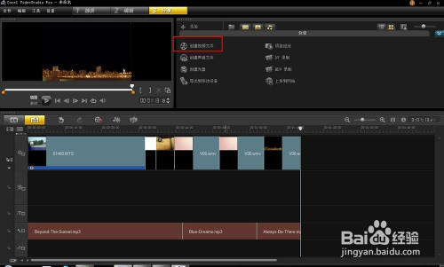 裁剪完当作后,预览整体结果,达到我们预期的结果后,进行“分享”——“建立视频文件”。