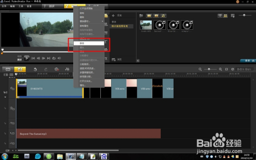 把我们带原始录制声音的视频文件进行“静音”处置。处置的方式是:右键——静音。