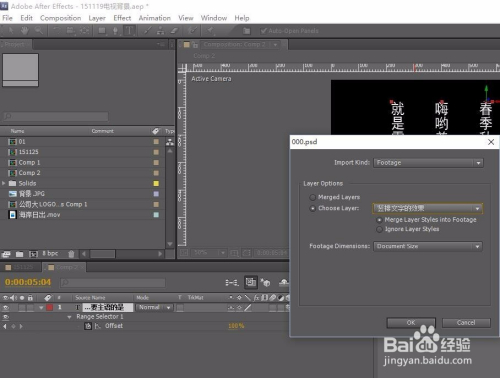 在PS中保留为PSD格局(或者是PNG格局)的文件,然后导入到AE之中即可。