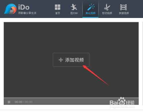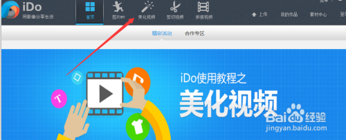 安装完当作后打开该软件,显示首页内容,点击上方菜单栏中的美化视频标签,如下图所示。