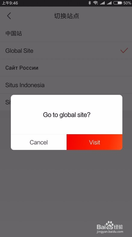 这时会弹出一下确认切换到国际版的提醒,点击“Visit”按钮即可。