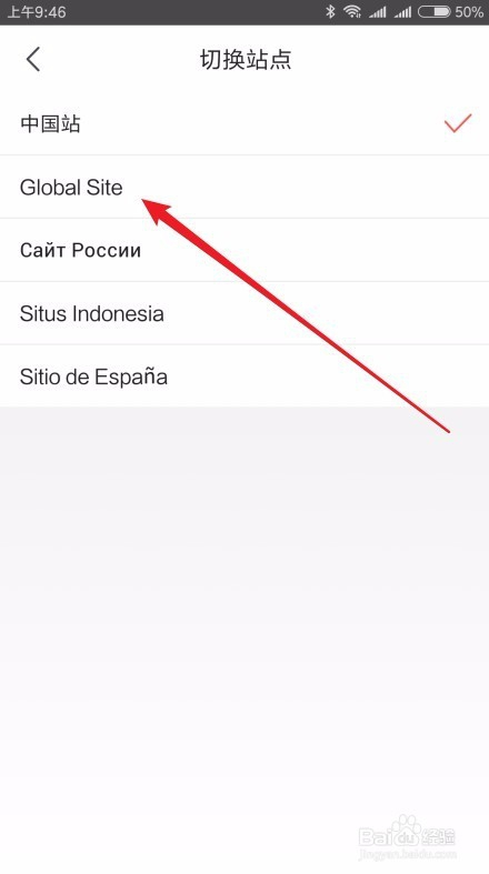 这时进入切换站点的页面,点击页面中的“Global Site”菜单项。