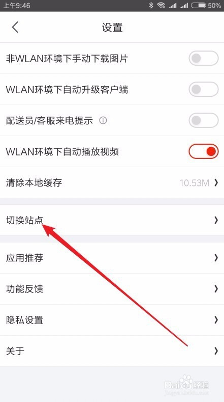 接下来在打开的页面中找到并点击“切换站点”菜单项