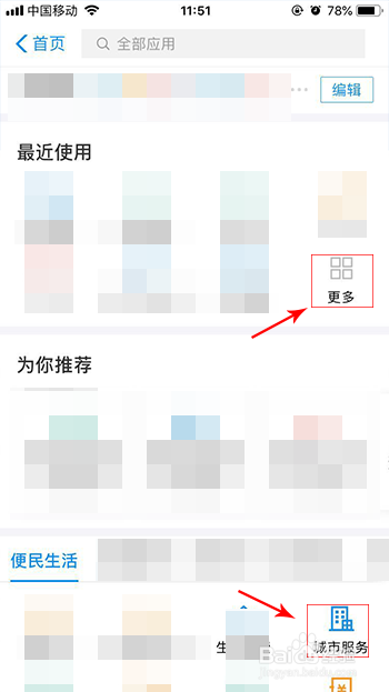 在更多界面,有两种路径可以找到“城市办事”