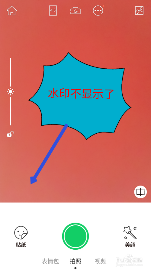 封闭水印后,在拍摄界面的左下角就不会显示了。如图所示