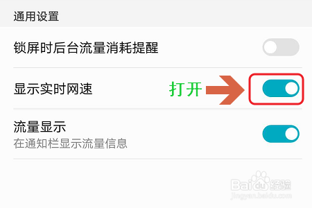 点击此logo就跳转到了通用设置界面,我们手动将“显示及时网速”的开关打开,然后在手机屏幕的顶端即可查看本身今朝的收集速度了;