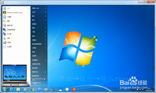 输入:regedit→确定,打开注册表。