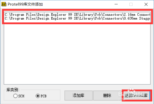 这里我们以添加两个库为例,如图,然后点击”更新protel“。