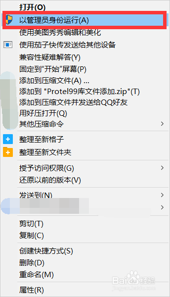 好了,到了这步,我们此刻起头运行protel99 se软件。单击鼠标右键,选择以办理员体例运行。(确保此前已按照步调3操作了)