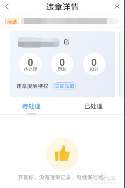点击今后会弹出一个界面,里面有查违章选项,点击查违章。