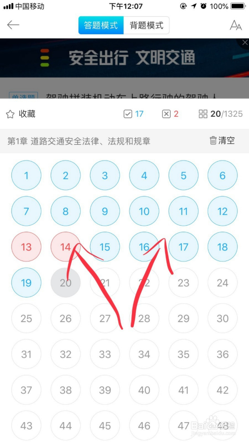 5. 步调4后,弹出的操练标题问题如图所示。就可以操练了。点击底部菜单栏:√或者×会弹出准确标题问题和错误标题问题的序号列表,如图。显示红色的暗示该标题问题错误,不然的话回覆准确