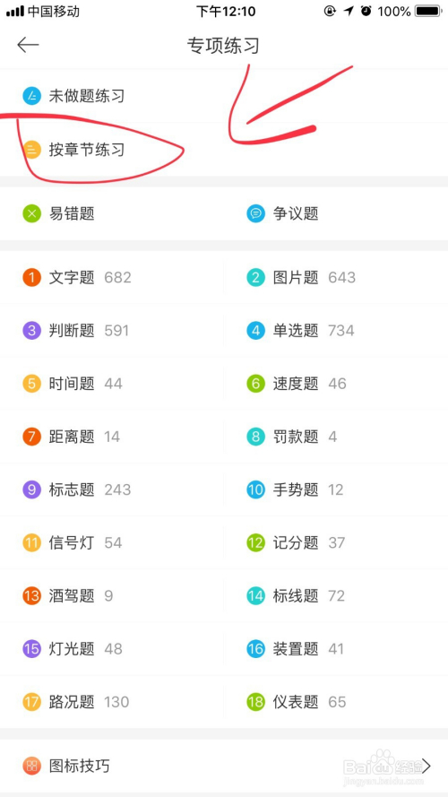 7. 步调6后的界面中选择【按章节操练】是按照常识点进行巩固性操练