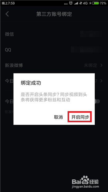 接下来系统会提醒【绑定当作功】,接着系统会扣问是否开启同步,点击【开启同步】。