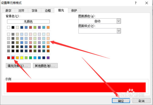 从上面选择你需要填充的颜色,这里我选个红色作为例子,点击窗口右下角的【确定】