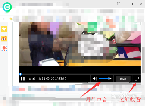 在直播视频的右下角可以调整声音,也可以点击功能按钮实现全屏收看。