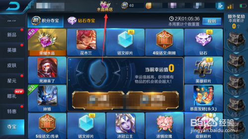 夺宝页面点击上方居中位置水晶商铺。